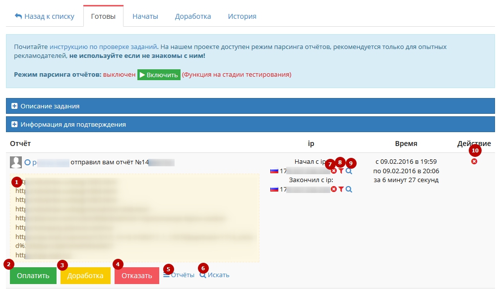 Это инструкция по проверке отчётов в заданиях с ручной проверкой, а также пояснения касательно режима парсинга отчётов.